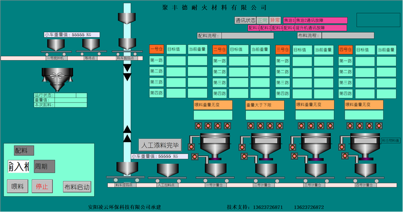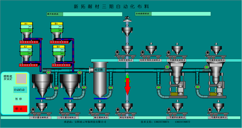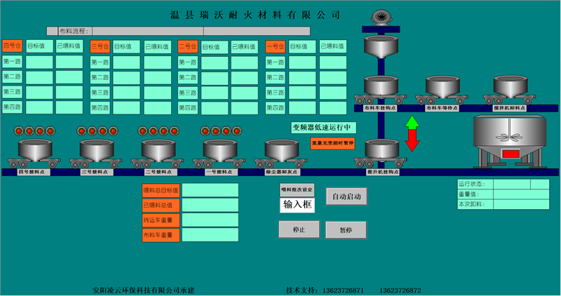 本公司擁有優(yōu)良的生產(chǎn)設(shè)備和技術(shù)開發(fā)團(tuán)隊,以良好的管理模式,豐富的生產(chǎn)和設(shè)計經(jīng)驗為環(huán)保工作做出了的一定的貢獻(xiàn)。主要針對鋼鐵、耐材等行業(yè)無塵環(huán)保配料工藝的改進(jìn),設(shè)計和生產(chǎn)全自動化無塵配料設(shè)備。除塵部分分為:集中式收塵和分散式收塵。計量部分分為:增量計量和減量計量控制模式??刂撇糠址譃椋杭儐纹瑱C控制、單片機加PLC控制、純PLC控制。