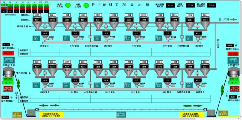 發(fā)揮單片機高精度數(shù)據(jù)采集處理和PLC智能邏輯控制的優(yōu)勢進(jìn)行互補,具有美觀易懂的人機交互界面。適合中小型無塵環(huán)保配料的行業(yè)。